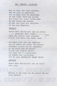 Al in 1932 verscheen het eerste clublied. Helaas is de melodie verloren gegaan maar uit[...]